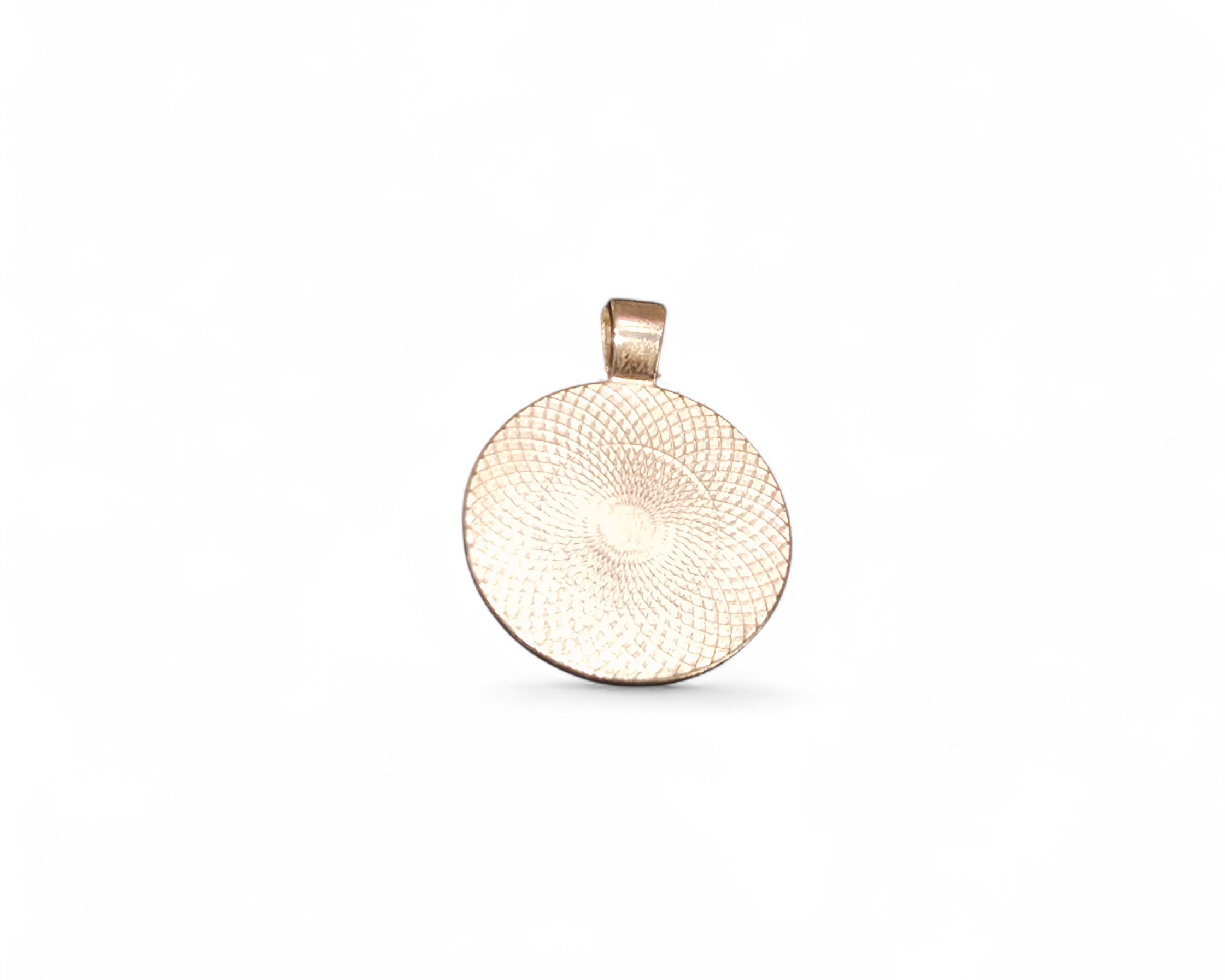 Product description: 25mm round glass, pour painted, set in silver tone metal alloy base. Lead and Nickel free.