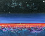 "Above The Clouds", this fine art reproduction print represents a fanciful landscape high up in the atmosphere. A beautiful sunset lights up colorful clouds and if you look closely way up in the night sky you can see two dragons. This fine art print makes a great addition to any room. It's the perfect gift for a friend or family member! The original painting uses both fluid art pour paint technique and traditional hand painting to bring it to life.