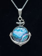 Introducing our stunning Anchor pendant done with pour paint technique! This unique piece features a whimsical array of colors reminiscent of a crashing wave. Perfect for art enthusiasts and lovers of nautical themes, this pendant is sure to make a stylish statement. All aboard!