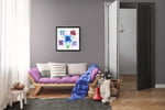 With its soft, harmonious tones of blue, red, purple, and teal, this piece adds a calming yet vibrant touch to your wall décor.