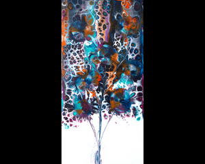 "Flower Celebration" is an original artwork created using the fluid art technique of pour painting. The vibrant blues and oranges come together to make this piece truly pop. I employed a swipe technique and balloon smashes to shape the flowers, adding texture and movement. Once the piece dried, I poured small puddles of paint on top of each flower and used another gentle smash to enhance the definition and bring out the details. This fine art reproduction will brighten up any space!