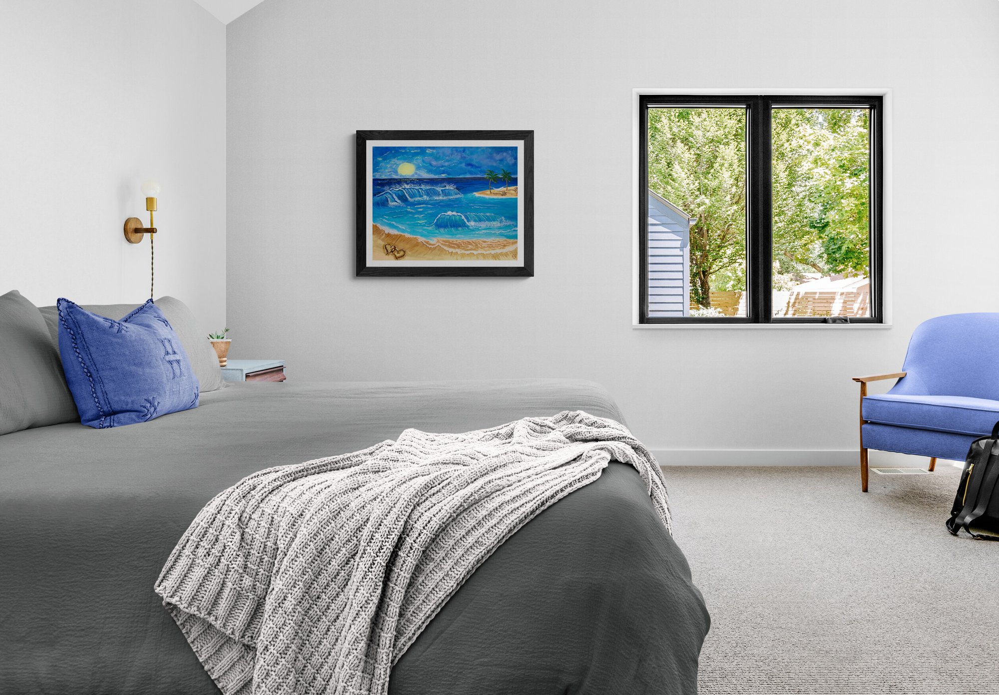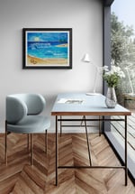 "Just Beachy is a stunning painting capturing the serene beauty of the ocean. With waves crashing and a palm tree silhouetted against the setting sun." Can you see yourself lounging in the hammock and feeling the cool ocean breeze? This fine art reproduction print is perfect for beach enthusiasts. It makes a great addition to a vacation home, office or living room. Anywhere that you want to escape to the beach!
