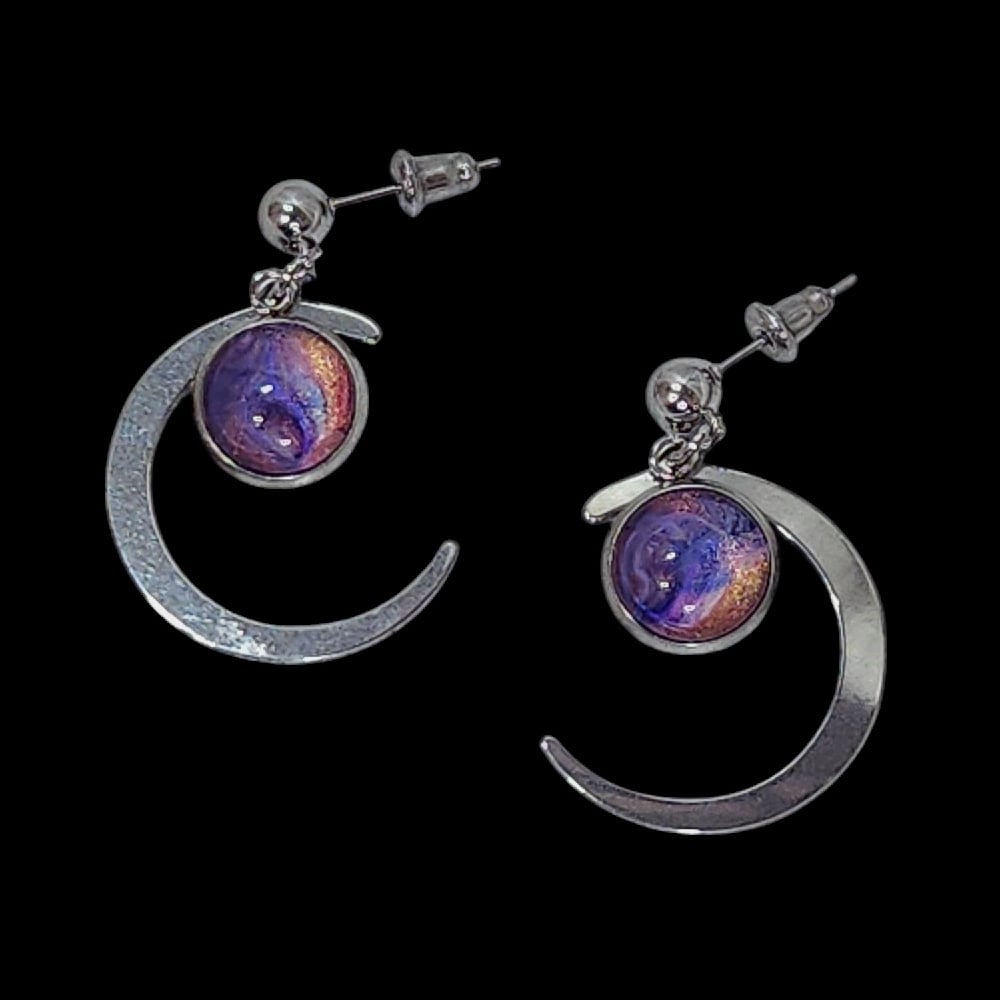 These vibrant Nebula inspired pour paint earrings with its deep blues, purples and gold shimmer are out of this world! Handmade and one of a kind, they'll add a cosmic touch to any outfit. Makes the perfect gift for yourself, Friends or Family.